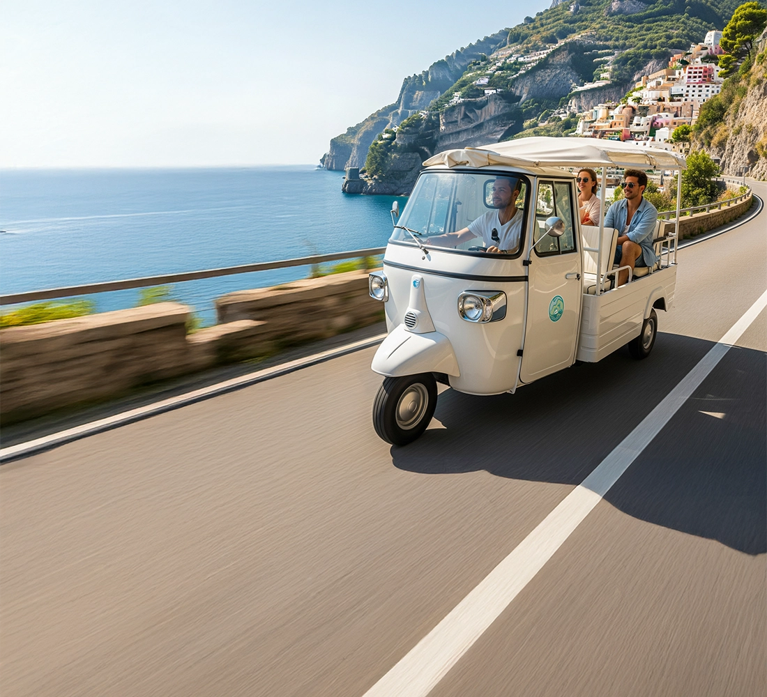 Scopri la straordinaria bellezza della Costiera Amalfitana su un autentico Ape Tuk-Tuk con la tua guida turistica e ammira alcuni dei borghi più pittoreschi d'Italia, da Positano a Ravello, Amalfi e la splendida Atrani.