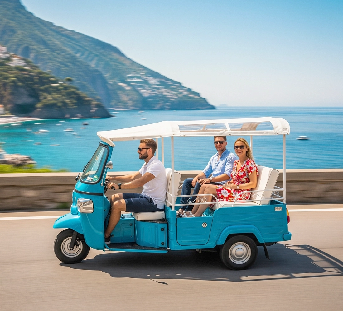 Il tour della Costiera Amalfitana in Ape Tuk-Tuk con Audioguida è l'esperienza perfetta per chi desidera scoprire le meraviglie di questa terra unica in un solo giorno. Da Sorrento ad Amalfi, passando per Positano, Furore, Conca de' Marini e Atrani, esplorerai panorami mozzafiato, vicoli pittoreschi e tradizioni locali. Il tutto in compagnia di una simpatica Audioguida multilingue dotata di una mappa interattiva ricca di contenuti che ti accompagnerà passo dopo passo, svelandoti leggende, storie, curiosità e folklore locale, in un'atmosfera tipicamente italiana.