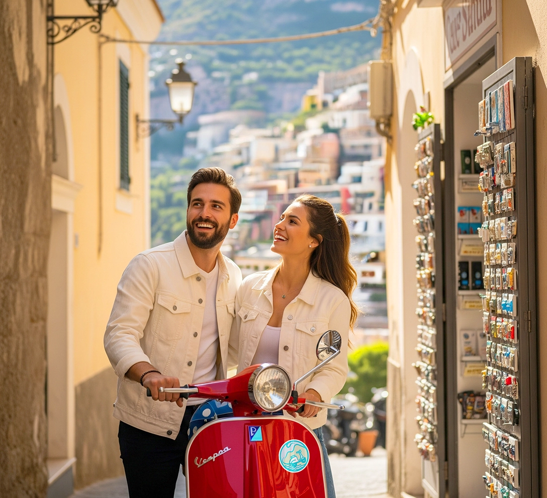 Segui le curve della Costiera Amalfitana a bordo di un'autentica Vespa d'epoca. Scopri la straordinaria bellezza del paesaggio e visita alcuni dei borghi più pittoreschi d'Italia con un'amichevole Audioguida multilingue e in compagnia del tuo city-trainer.