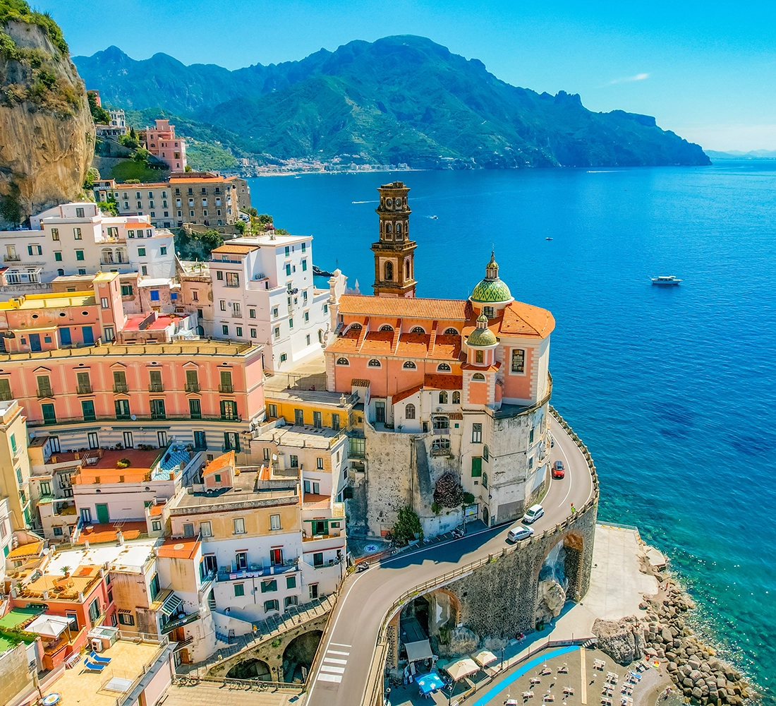 In 7 ore circa vivrai la magia di Positano, con le sue casette colorate arroccate tra le cime più alte della Costiera, la Chiesa lungo la famosa scalinata che porta alla spiaggia e le famose botteghe artigianali in un’atmosfera tipicamente italiana. Scoprirai la vista spettacolare dal fiordo di Furore, visiterai Amalfi con la sua splendida Cattedrale affacciata sulla deliziosa piazzetta e assaporerai il famoso Limoncello locale. Raggiungerai la più bella terrazza panoramica per sorseggiare una fresca spremuta d'arancia alla scoperta delle tradizioni locali, immortalando il momento con un selfie che porterai nel cuore.