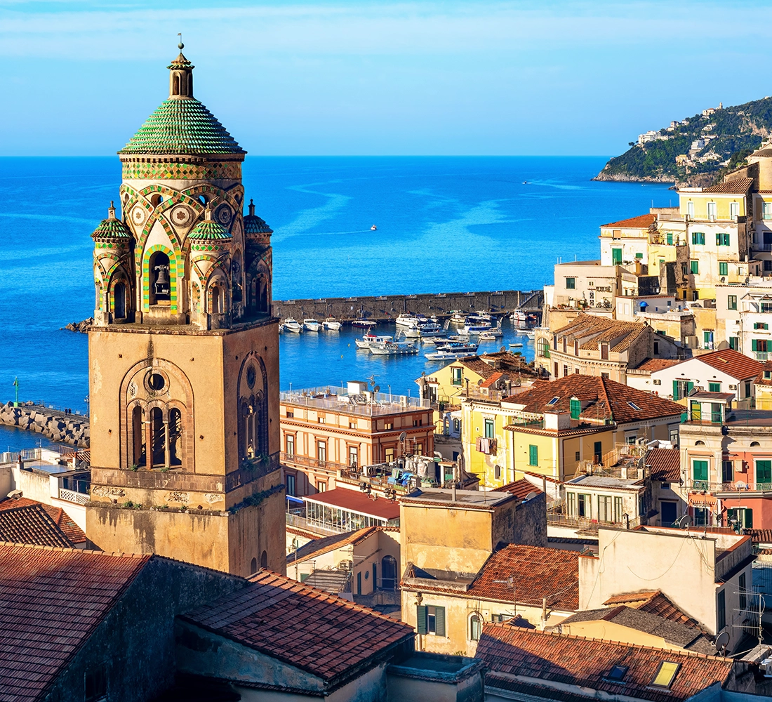 In 7 ore circa vivrai la magia di Positano, con le sue casette colorate arroccate tra le cime più alte della Costiera, la Chiesa lungo la famosa scalinata che porta alla spiaggia e le famose botteghe artigianali in un’atmosfera tipicamente italiana. Scoprirai la vista spettacolare dal fiordo di Furore, visiterai Amalfi con la sua splendida Cattedrale affacciata sulla deliziosa piazzetta e assaporerai il famoso Limoncello locale. Raggiungerai la più bella terrazza panoramica per sorseggiare una fresca spremuta d'arancia alla scoperta delle tradizioni locali, immortalando il momento con un selfie che porterai nel cuore.
