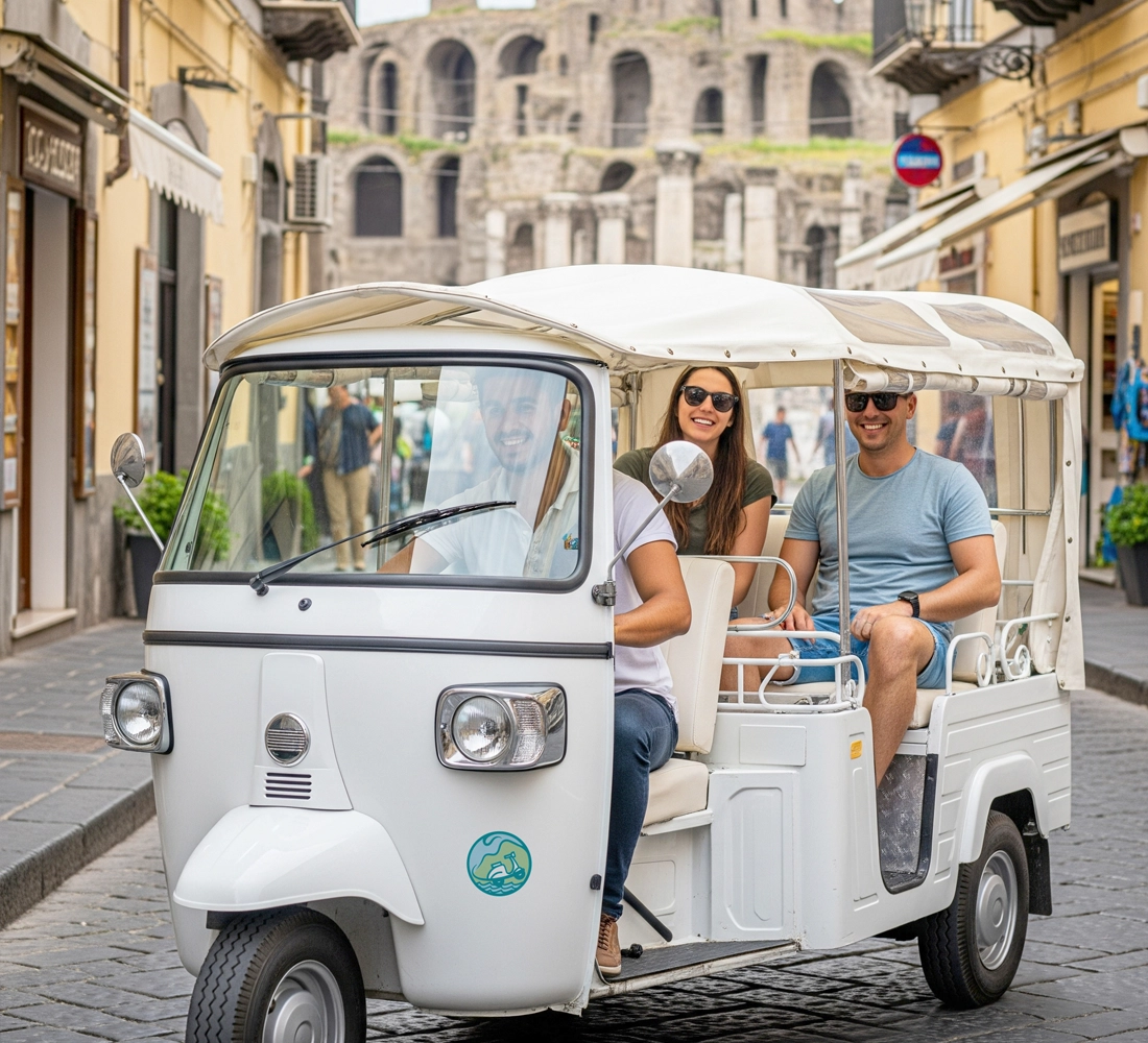 Scopri la straordinaria bellezza dei Campi Flegrei a bordo di un originale Ape Tuk-tuk, attraversando un paesaggio unico dove la forza della natura vulcanica incontra le vestigia dell’antica Roma. Un vero e proprio viaggio nel tempo alla scoperta di una terra millenaria che ha incantato filosofi, imperatori e viaggiatori di ogni epoca che ti condurrà lungo affascinanti tratti di strade romane tra antiche rovine e laghi vulcanici, in un territorio che fu scelto dagli imperatori come luogo di villeggiatura e Otium. Tra terme millenarie, maestosi anfiteatri e necropoli monumentali, ogni tappa sarà un’autentica immersione nella storia e nella bellezza paesaggistica di questa terra leggendaria. Un’esperienza indimenticabile, ricca di emozioni e sorprese, per vivere i Campi Flegrei come non li hai mai visti: in sella al mito italiano per eccellenza.