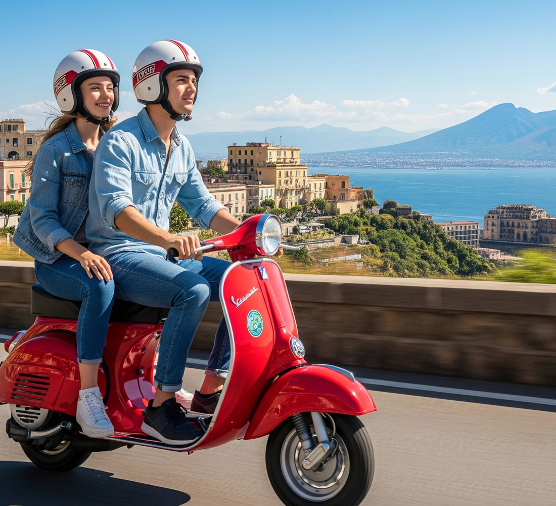 A bordo di un’autentica Vespa d’epoca esplorerai le strade del centro storico di Napoli, tra castelli medievali, piazze affollate e scorci dal fascino intramontabile. Vivrai un’atmosfera tutta italiana, sospesa tra storia e bellezza. Lasciato il traffico alle spalle, percorrerai il Lungomare fino a raggiungere la collina di Posillipo, da cui potrai ammirare alcuni dei panorami più spettacolari al mondo. Grazie alla nostra Audioguida multilingue, disponibile direttamente sul tuo smartphone, scoprirai curiosità, leggende e le storie più affascinanti di Napoli, in un vero e proprio viaggio nel tempo.