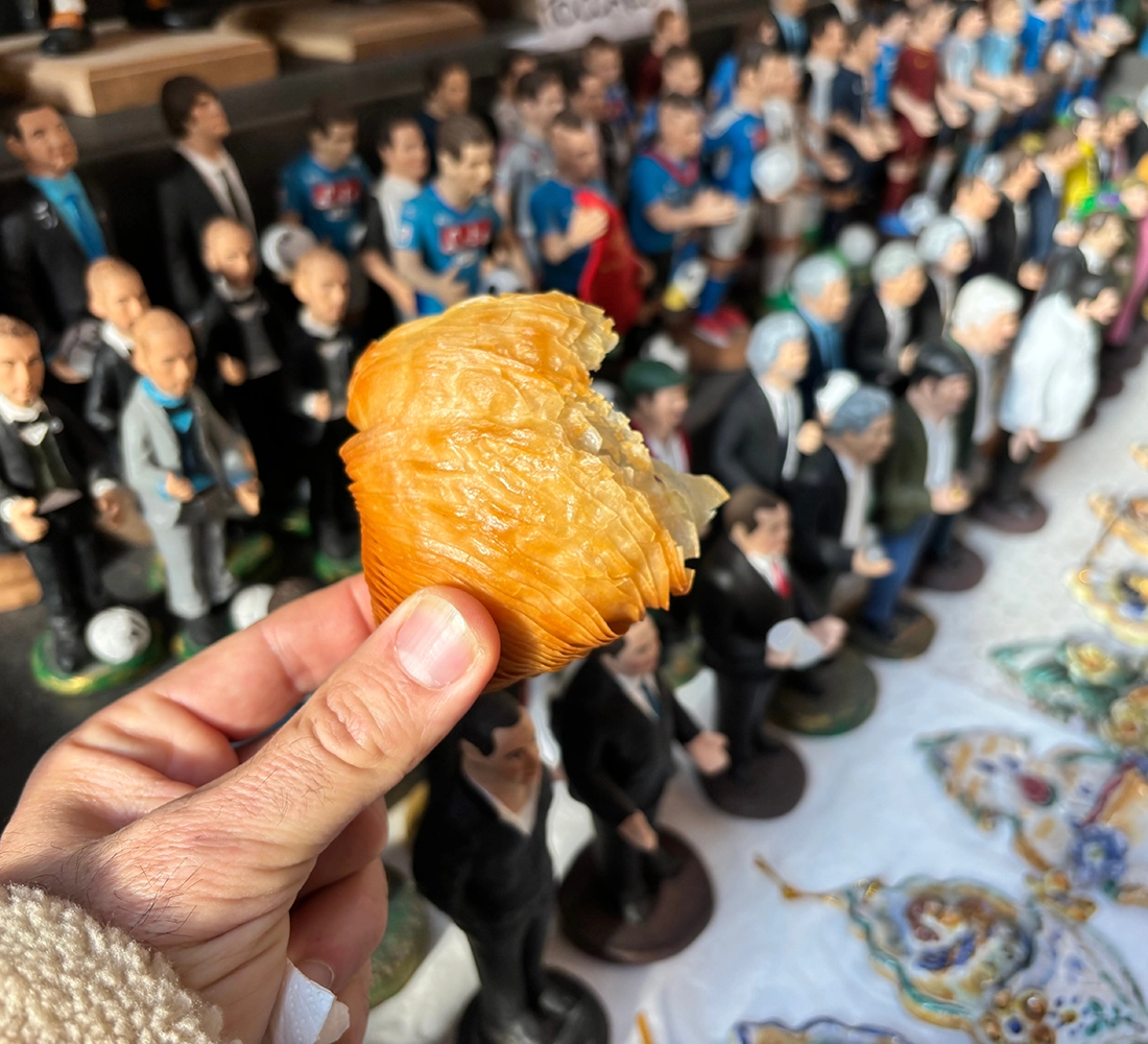 Il tour si conclude nel modo più tradizionale: con una tazzina di caffè espresso napoletano e una sfogliatella appena sfornata.